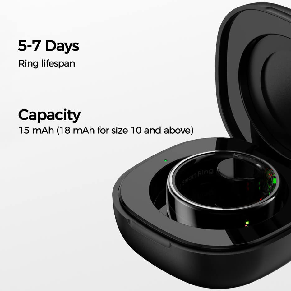 Dem Ring liegt ein praktisches Ladecase bei, welches Ihnen das Aufladen des Rings jederzeit und überall ermöglicht. Zum Aufladen legen Sie den Ring einfach in das Ladeetui. Das Ladeetui selbst wird über das mitgelieferte USB-Kabel aufgeladen, was den Ladevorgang einfach und bequem macht.
