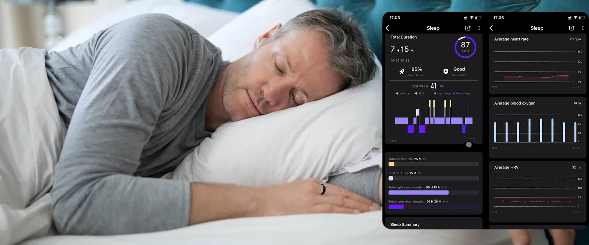 【Schlafüberwachung】Verwenden Sie den Smart Ring Health Tracker, um Ihre nächtlichen Schlafmuster umfassend zu analysieren. Es überwacht den Tiefschlaf, den Leichtschlaf, den REM-Schlaf und den Wachzustand, bietet eine detaillierte Schlafstruktur und verfolgt Ihre Schlafqualität, damit Sie Ihren Ruhezustand besser verstehen und verbessern können.