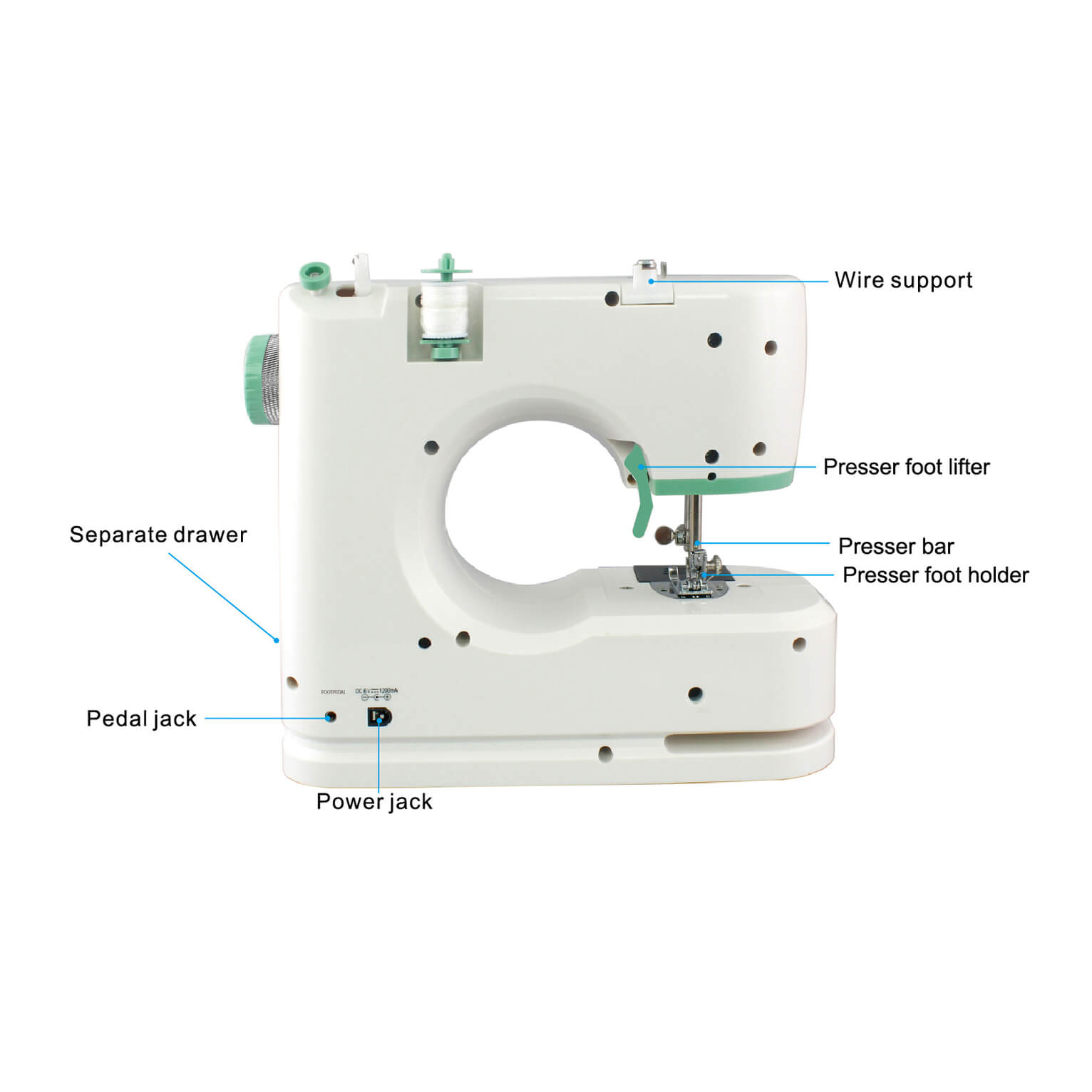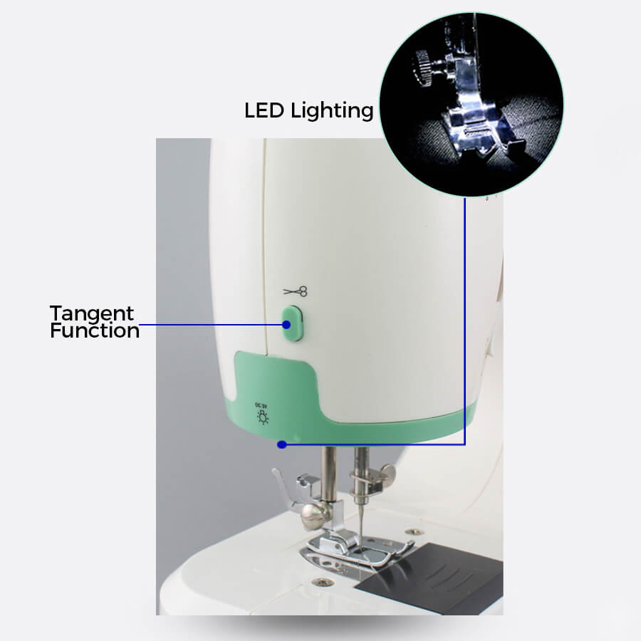 • Ermöglicht sowohl Vorwärts- als auch Rückwärtsnähen für noch mehr Flexibilität und Komfort.